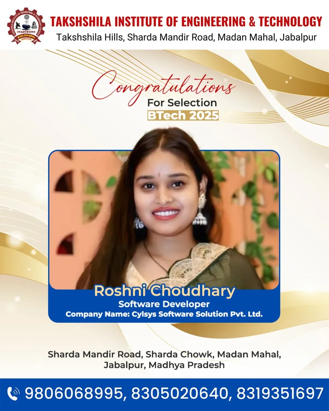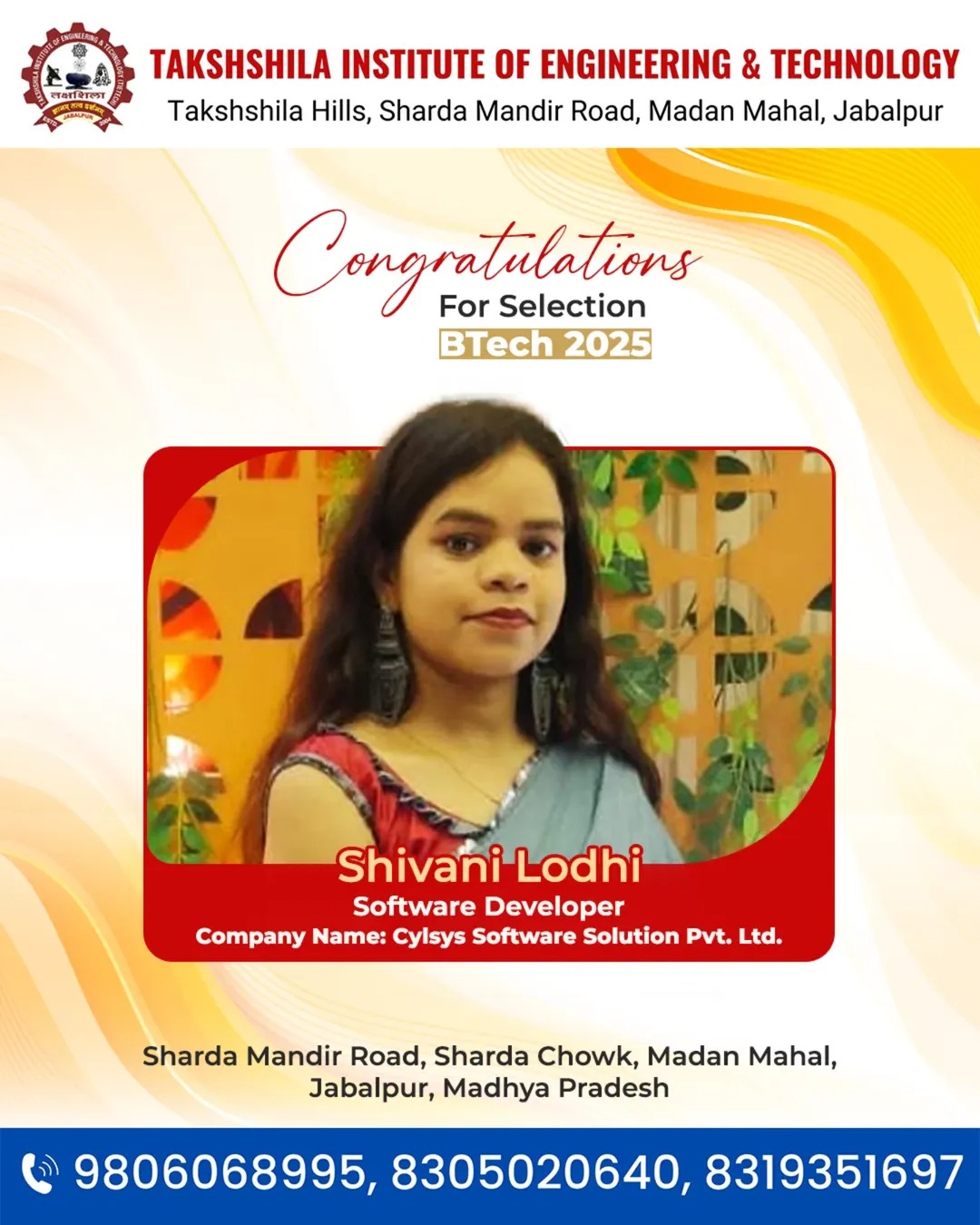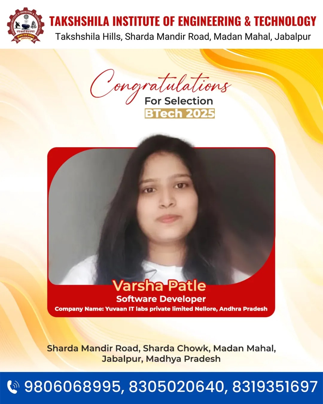 | DINESH KUMAR SAHU(BE-EC) VXL SOFTWARE | AKASH PATEL(B.TECH-CS) TIKAJ TECHNOLOGIES | ASMA BANO(B.Tech-CS) NETLINK'S | DEEPAK AMBANI(B.Tech-CS)- MINT SOLUTIONS | ASHU THAKUR (MBA)- INFOSYS | |